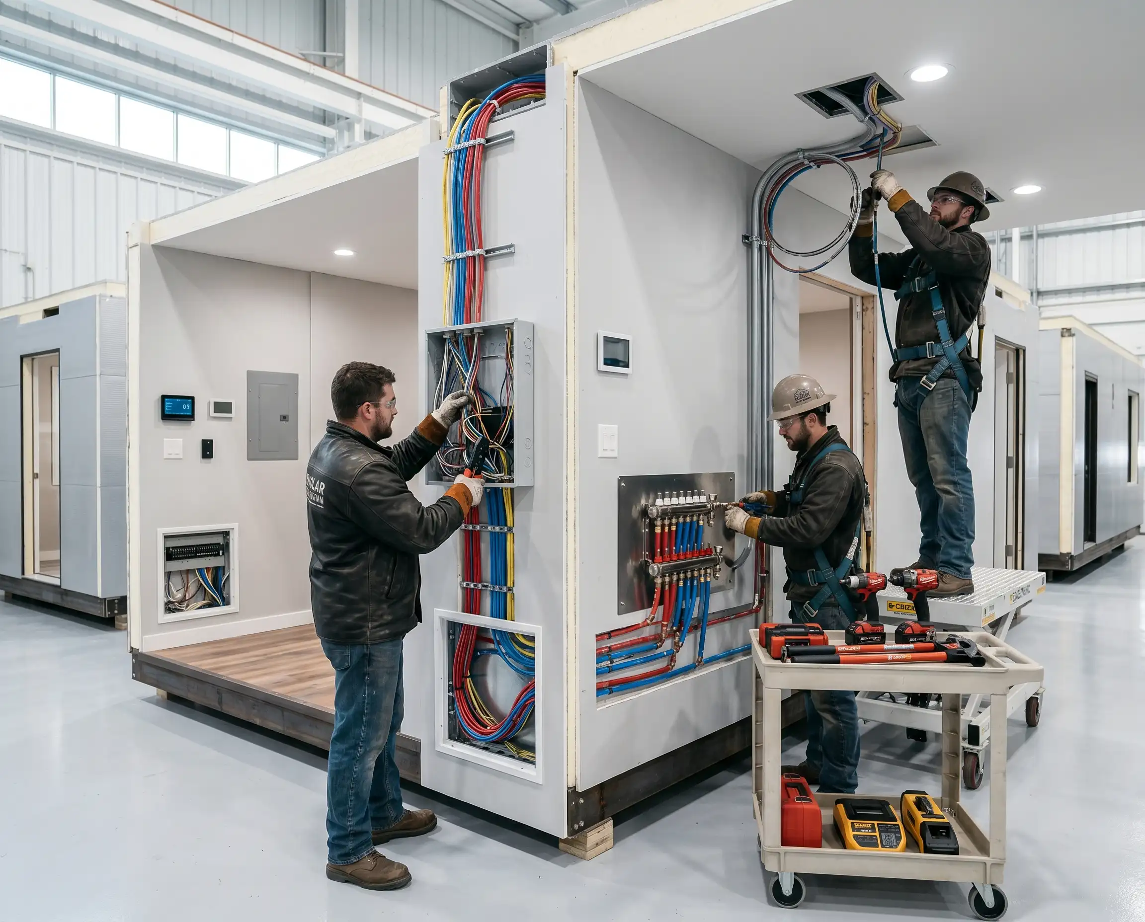 Pre-installed electrical and plumbing systems for faster and easier setup.
